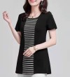 100KG胖女可穿2022新款韩式条纹长袖T恤女式短袖加大码盖腹圆领时尚T恤连衣裙优雅衬衫女式T恤